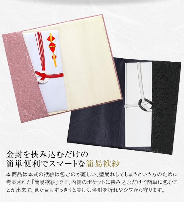 ・本商品は本式の袱紗は包むのが難しい、型崩れしてしまうという方のために考案された「簡易袱紗」です。内側のポケットに挟み込むだけで簡単に包むことが出来て、見た目もすっきりと美しく、金封を折れやシワから守ります。