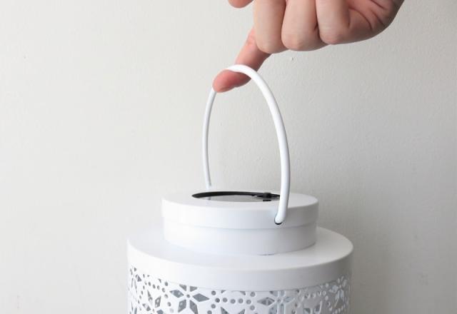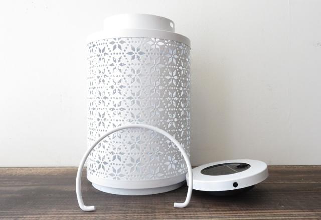 3つのパーツに分離が出来き、ハンドルを取り外すとソーラーパネルの埋め込まれたフタも分離可能。内部の拭き取りもカンタンで、お手入れし易いソーラーライトです。 |