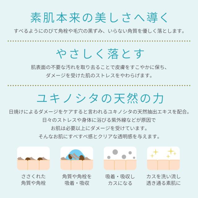| ぬれた手でも使える花雪肌-くすみがちなお肌に透明感を- 『花雪肌角質クリアジェルplus(プラス)』は、すべるようにのびて、角栓や毛穴の黒ずみ、いらない角質を優しく落とします。 また、日焼けによるダメージをケアするといわれている、ユキノシタの天然抽出エキスを配合しています。 日々のストレスや体に浴びる紫外線などが原因で、お肌は必要以上にダメージを受けています。『花雪肌 角質クリアジェルplus(プラス)』はそんなお肌にすべすべ感とクリアな透明感を与え、使ったその日からお肌の感触・印象の違いが実感できます。 『花雪肌 角質クリアジェルplus(プラス)』の使い方 1)3〜6回手にプッシュし、顔の気になるところを指先で軽くマッサージします。 2)浮き上がった古い角質や汚れを水やぬるま湯で良く洗い流してください。 3)その後、化粧水やクリームを使うと素早く浸透していきます。 ※ご使用は週に1〜3回が目安です。 ※使用後は洗い流してください。 ※お肌に合わない場合は使用を中止してください。 |