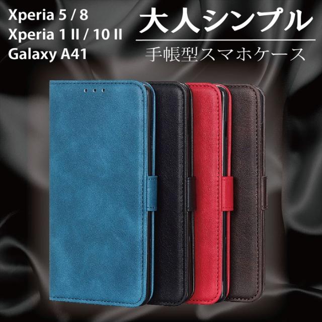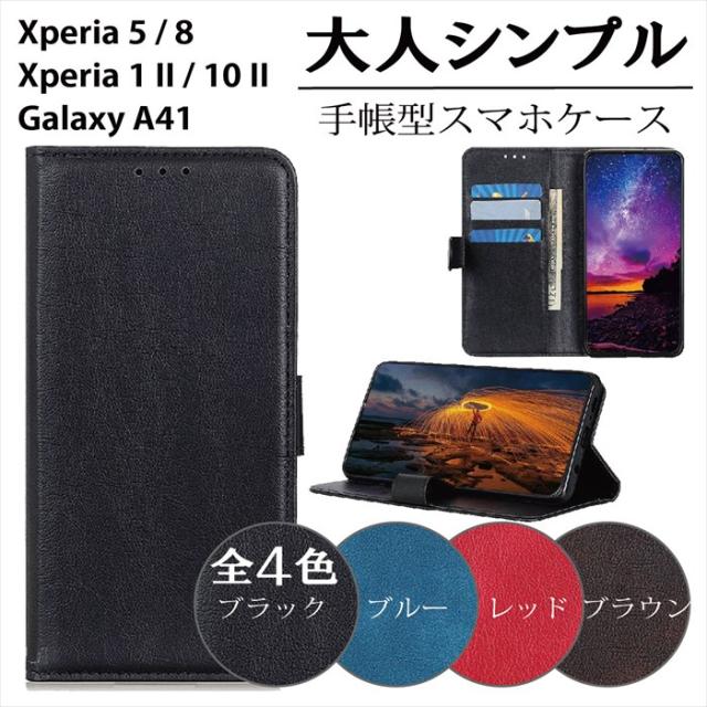 Xperia Galaxy 手帳型 ケース Xperia1II 10II 選べる4色 Xperia5 Xperia8 GalaxyA41 スタンド機能 カードポケット 韓国 シンプル エクスペリア ギャラクシー 大人 かわいい エクスペリア 1 II マーク2 エクスペリア5 カード 収納 可愛い ビジネス agesugi_ssm