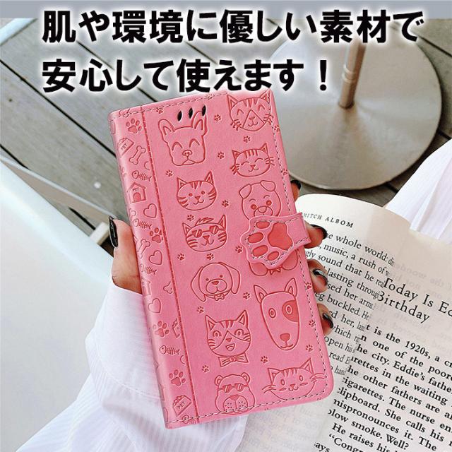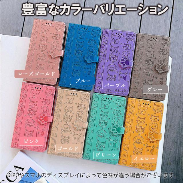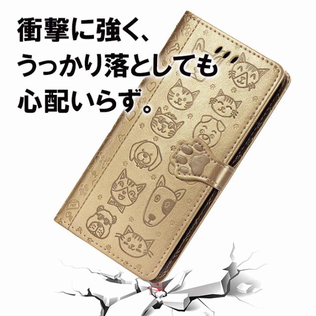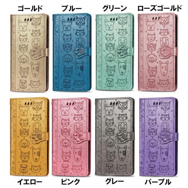 衝撃吸収 スマホケース イヌ ネコ 動物 可愛い 黄色 青 金色 灰色 紫 緑 手帳 スマホカバー 自立スタンド マーク2