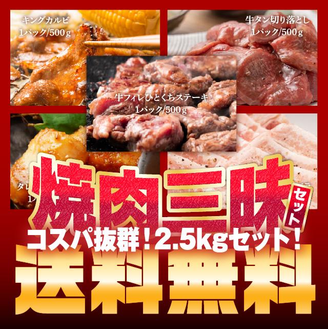 焼肉 bbq 焼肉三昧 セット コスパ抜群 計2.5kg 牛フィレひとくちステーキ キングカルビ500g 牛タン切り落とし500g 焼肉用豚バラ肉500g 特製味噌漬牛ホルモン500g メガ盛り 食品 お肉 バーベキューセット