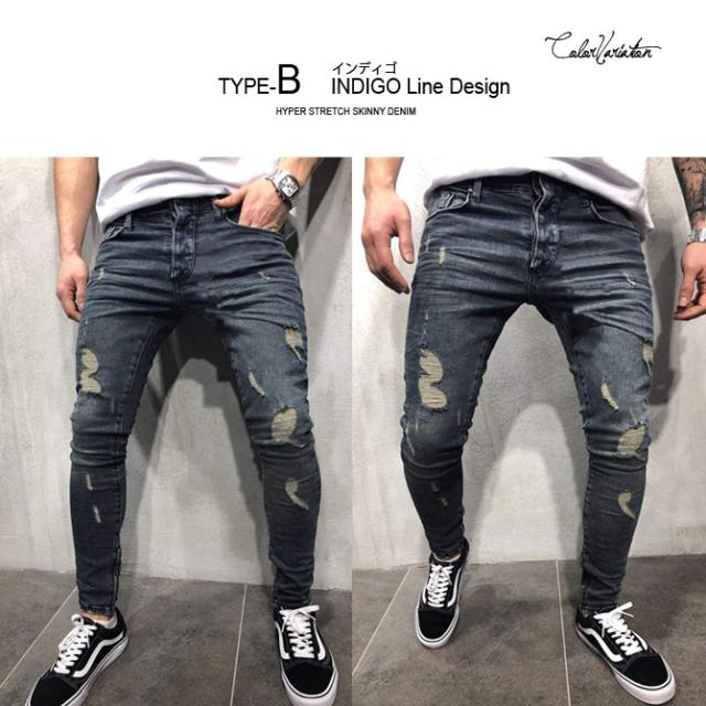 ジーパン メンズ ハイパーストレッチ ストレッチ スキニー ジーンズ ハイパーストレッチ ダメージ加工 クラッシュデニム ジーンズ 春新作