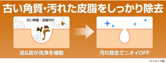 | 成分 | 石ケン素地、水、パーム脂肪酸、パーム核脂肪酸、カキタンニン、トリクロカルバン、ショウガ根エキス、アセンヤクエキス、ウイキョウ果実エキス、レモングラス葉/茎エキス、カオリン、ベントナイト、炭、グリセリン、グリチルリチン酸2K、塩化Na、BG、エタノール、炭酸水素Na、炭酸Na、エチドロン酸、EDTA-4Na、エチドロン酸4Na、香料、酸化チタン、酸化鉄、橙205 |