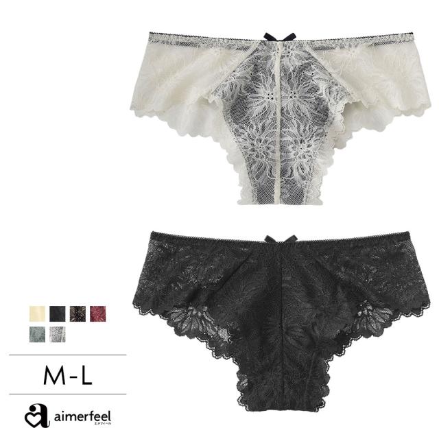 サイドからバックにかけて透け感のある花柄レースで仕上げたSEXYなハーフバックショーツです。バックスタイルの小さなレースアップがポイント。ヒップの丸みがきれいに見えるハーフバック(チーキー)スタイルは、プレーンショーツの安心感とTバックショーツの響きにくさのイイとこ取りをした形。伸縮性のあるレース生地を使用することで、タイトなボトムスやワンピースにショーツのラインが響くのを軽減しました。カラーは定番のオフホワイトやブラック系、大人っぽいワインレッドのほか、ブラックの身生地に別カラーのレースを重ねたブラック×ホワイト、ブラック×ミントなどのお洒落な配色もご用意しました。
