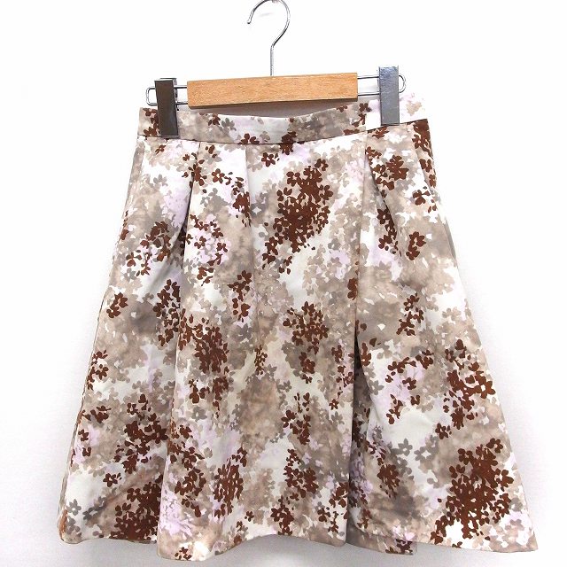 【中古】リランドチュール Rirandture スカート 総柄 フレア タック ひざ丈 1 ホワイト 白 ブラウン 茶 /FT16 レディース