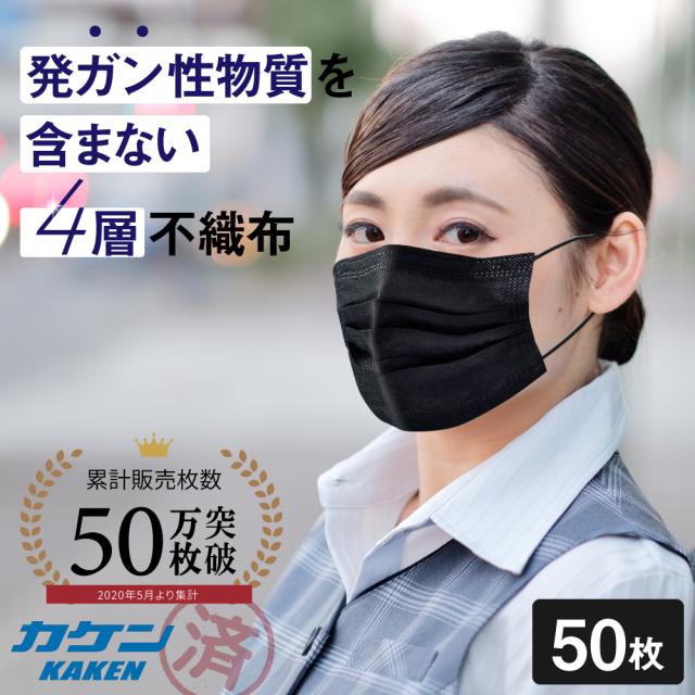 ブラック マスク 黒 使い捨て タイプ 男女兼用 4層構造 個別包装 50枚 セット 国内検査済み