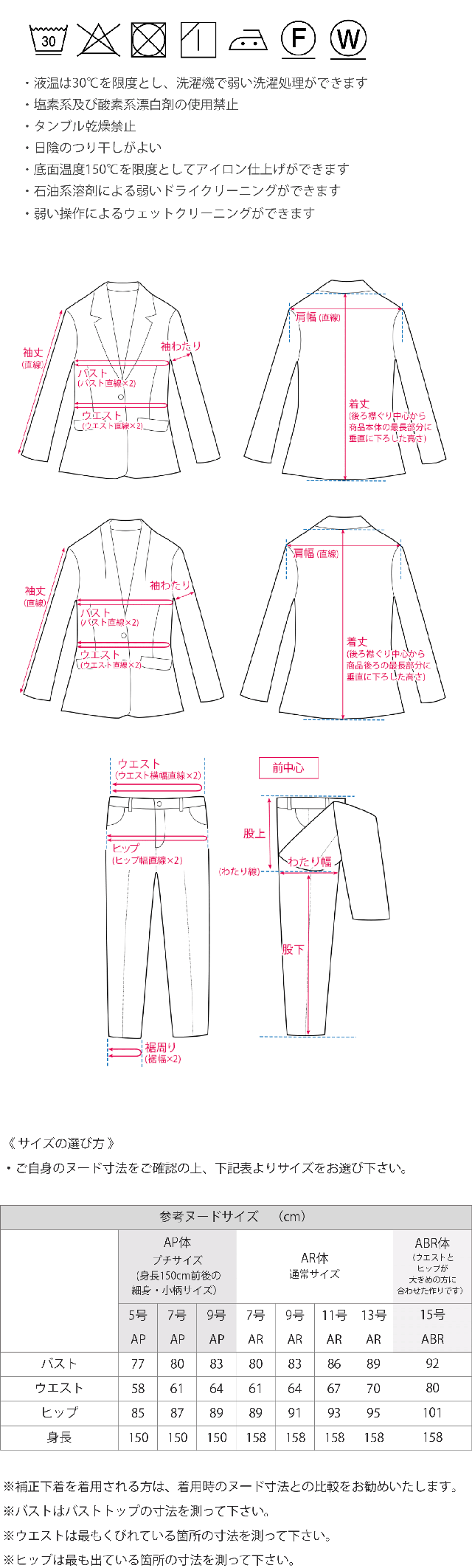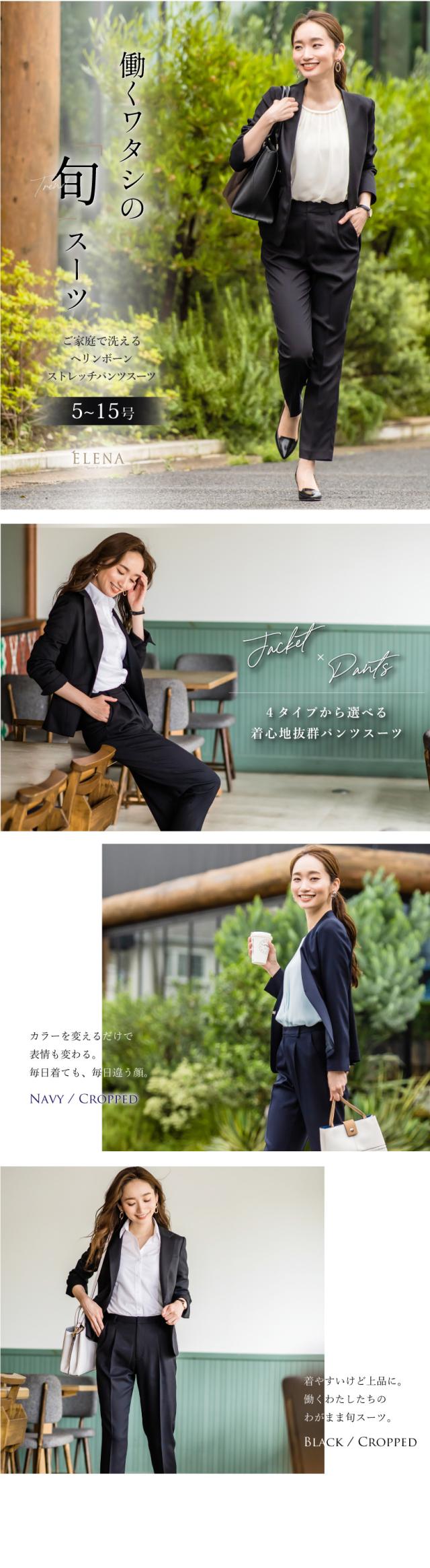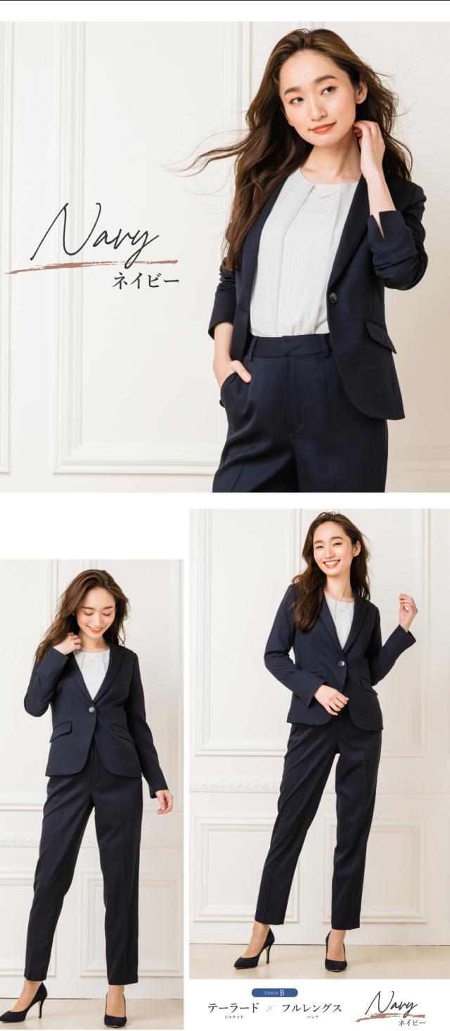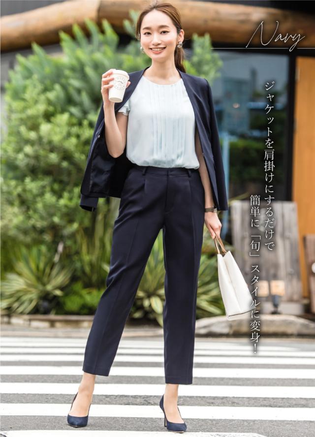| ジャケットデザインは定番テーラードジャケットと、おしゃれなカラーレスジャケットの2種類。 パンツは、フルレングス丈とクロップド丈の2種類からお選び頂けます。 半裏地ジャケット×パンツのフォーマル&キャリア対応パンツスーツです。 高級スーツに使われるヘリンボーン生地を用いています。 動きを邪魔しない、耐久性に優れ、柔らかくシワになりにくい素材です。 ナチュラルストレッチ素材を使用しています。 またご家庭で洗えるのでいつでも清潔に着用できます。 この時期に嬉しいご家庭で洗えるパンツスーツ! 汗をかいてもすぐに洗えます! ジャケット部分はオールシーズン着用できる半裏地のおつくり。 ヘリンボーン生地が細身効果を発揮し、エレガントな素材感を演出。 美しいシルエットと快適な着心地で、クールにセレモニー&キャリアスタイルが決まります。 様々なシーンに対応可能&スタイルアップを実現するパンツスーツです。 | |