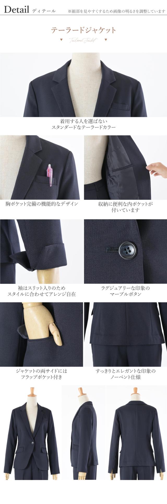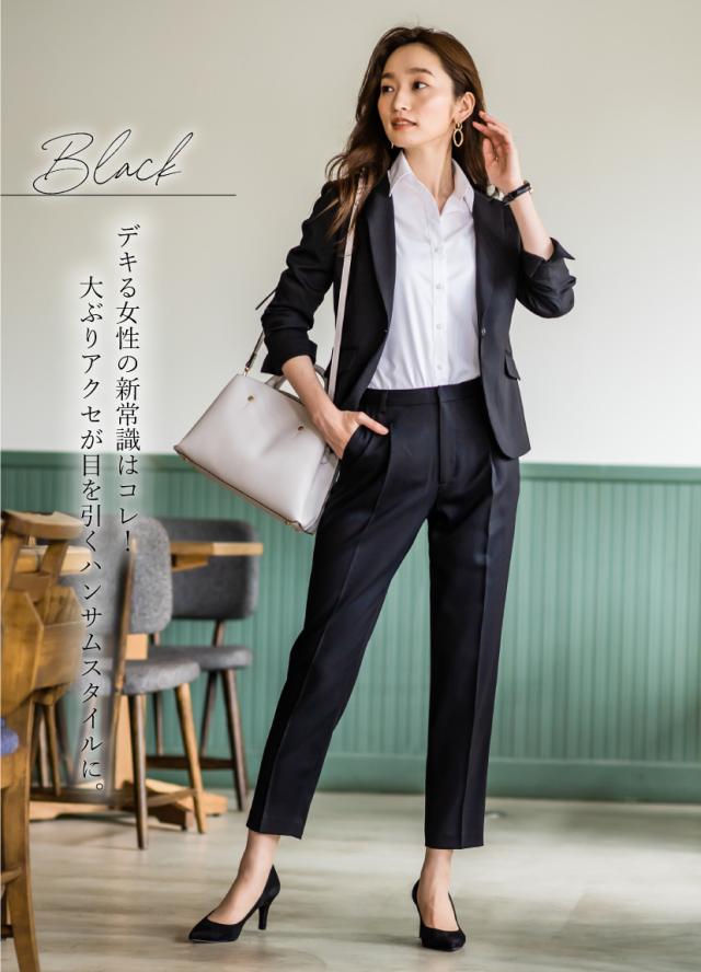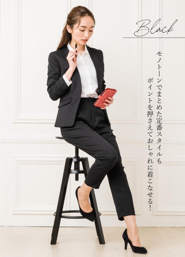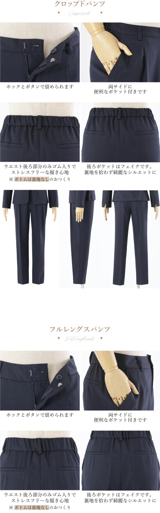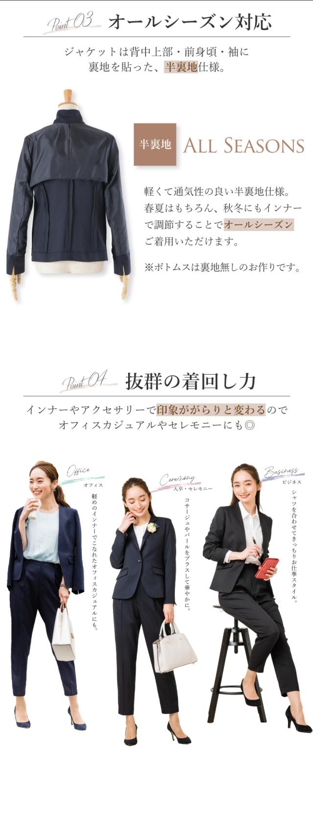 半裏地ジャケット×パンツのフォーマル&キャリア対応パンツスーツです。