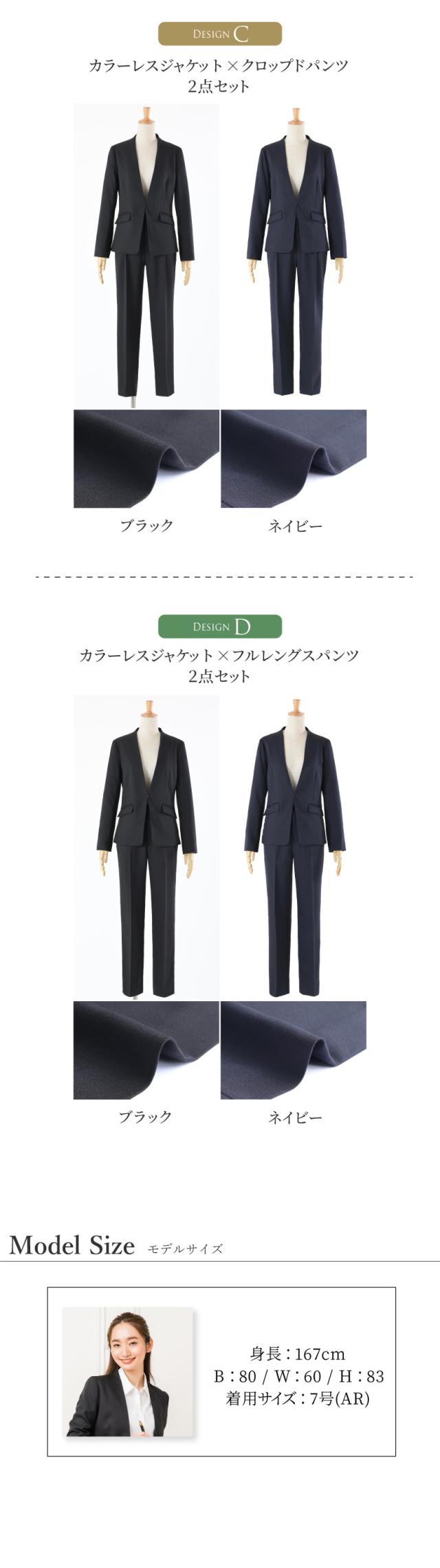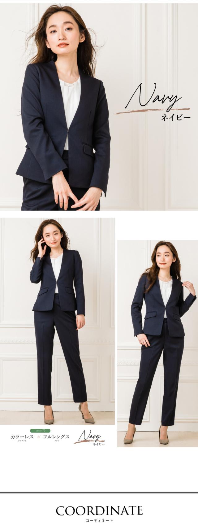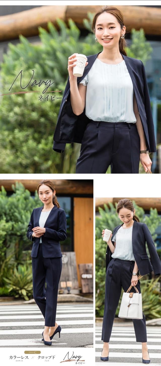 ジャケットデザインは定番テーラードジャケットと、おしゃれなカラーレスジャケットの2種類。