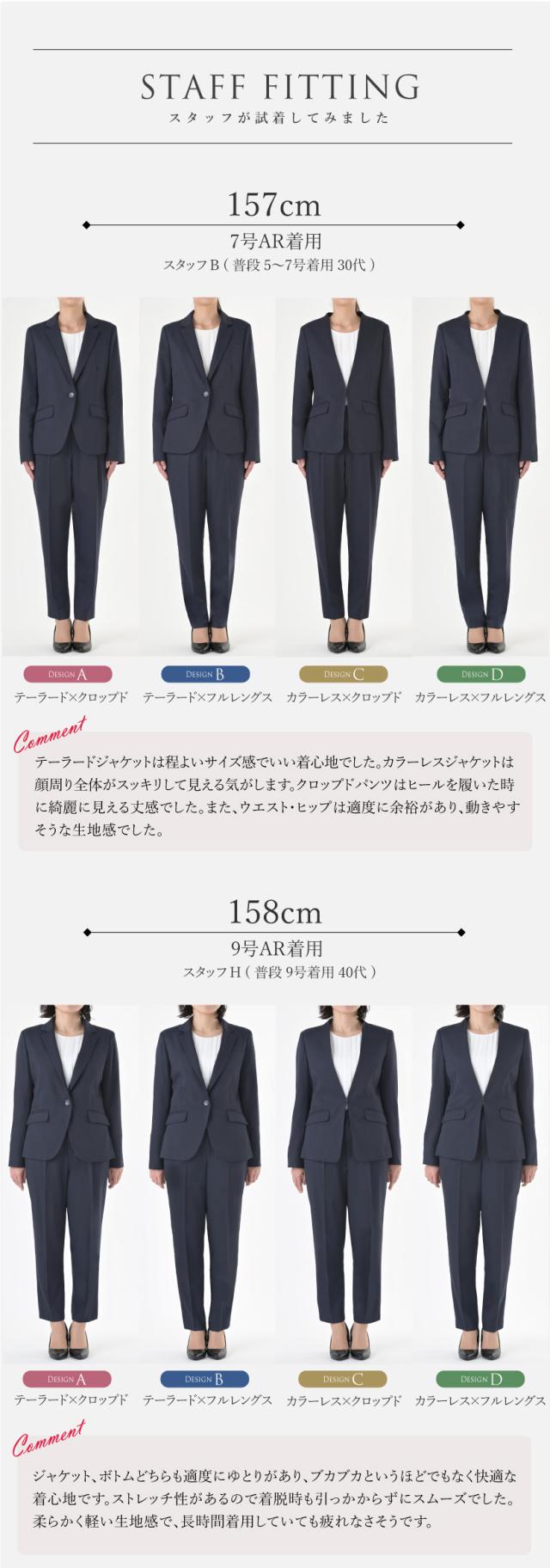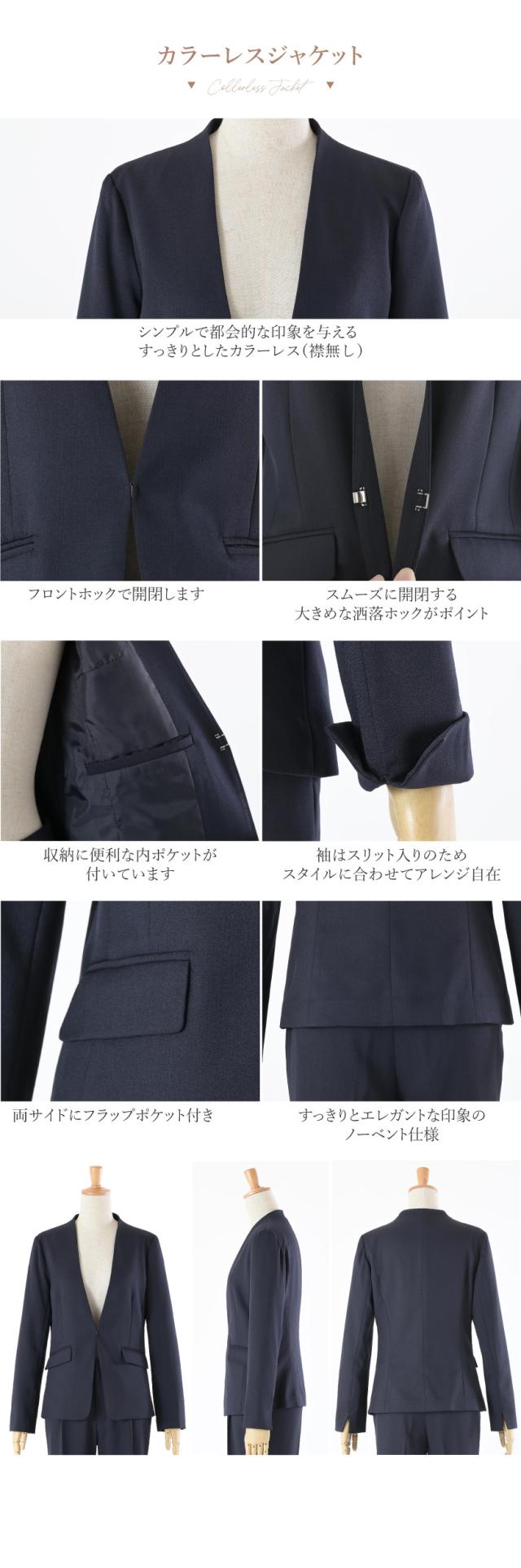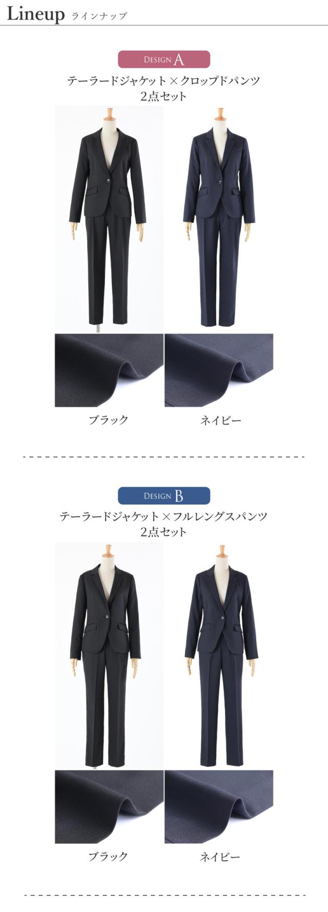 ジャケットデザインは定番テーラードジャケットと、おしゃれなカラーレスジャケットの2種類。