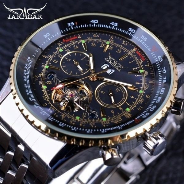 腕時計 メンズ 防水 JARAGAR 自動巻き 機械式 クラシカル トゥールビヨン カレンダー ステンレス ラグジュアリー