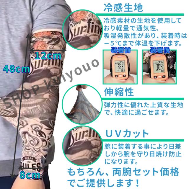 アームカバー uv 冷感 涼感 夏バテ 冷却 メンズ レディース スポーツ uvケア 夏用 左右 セット uvカット 清涼 クール 入れ墨風 刺青 タトゥー 日焼け 防止 釣り ルアー フィッシング バイク ランニング アウトドア ジョギング ゴルフ 送料無料 即納