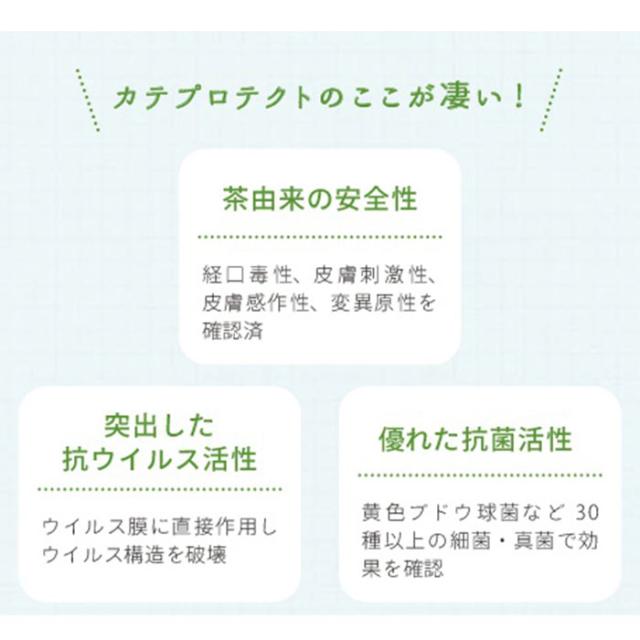 | 成分 | カテプロテクト(カテキン脂肪酸エスエル) DPG、水、クエン酸塩 グリチルリチン酸ジカリウム、香料 |