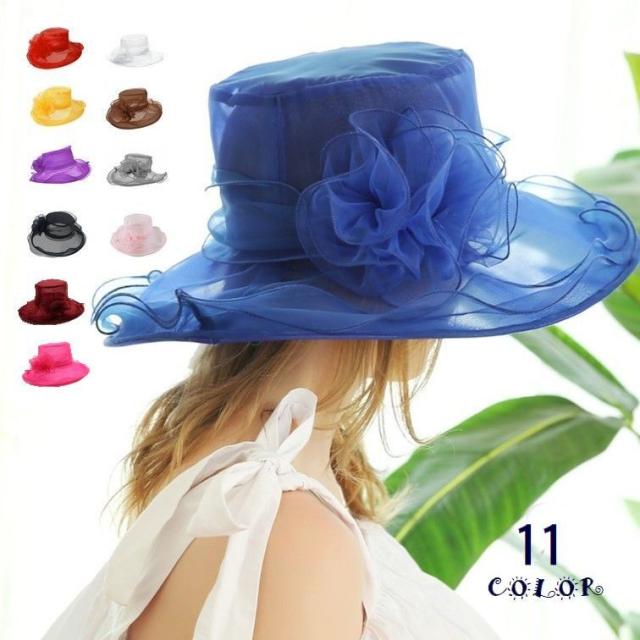 ハット レディース 女性 婦人 帽子 つば広 コサージュ チュール 透け感 花 フラワー 上品 かわいい おしゃれ フェミニン