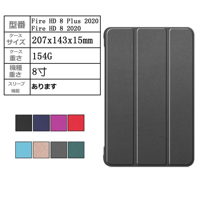 Amazon All new fire HD8 / HD8 Plus 2020 / fire HD8 HD8 Plus 2022 モデル タブレットケース タブレットカバー 三つ折 カバー 薄型 軽量型 スタンド機能 PUレザー 全13色