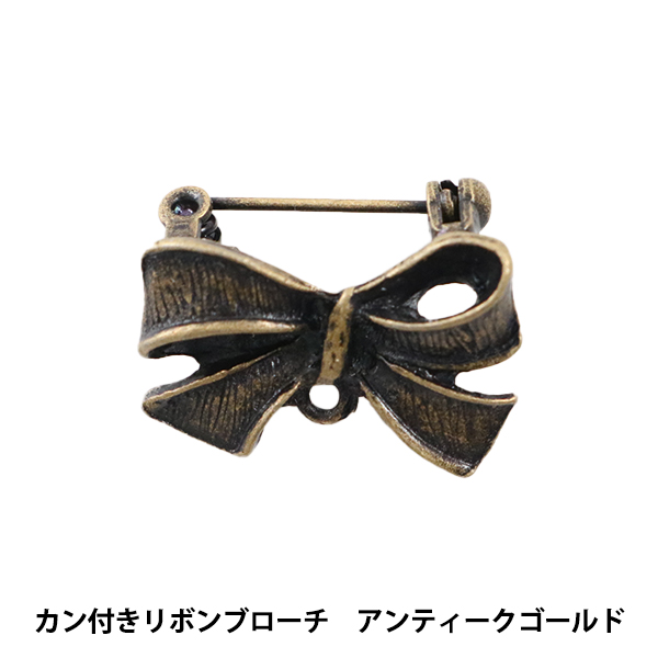 手芸金具 『カン付きリボンブローチ アンティークゴールド #1042』