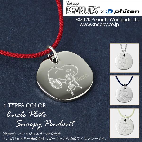 PEANUTS×ファイテン 4種 スヌーピー サークルプレート ステンレススチール ネックレス 公式 オフィシャル ステンレス phiten ウッドストック