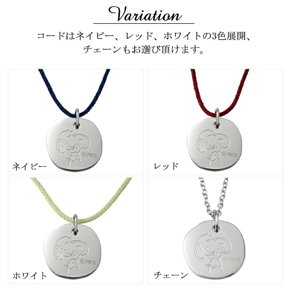 コードはネイビー、レッド、ホワイトの3色展開、チェーンもお選び頂けます。