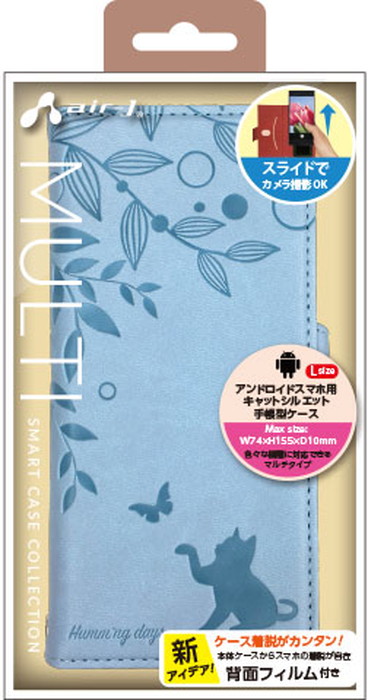 汎用ケース 多機種対応 マルチタイプキャットシルエット手帳型ケース