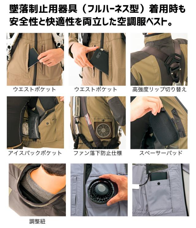 墜落静止用器具(フルハーネス型)着用時も安全性と快適性を両立した空調服ベスト。