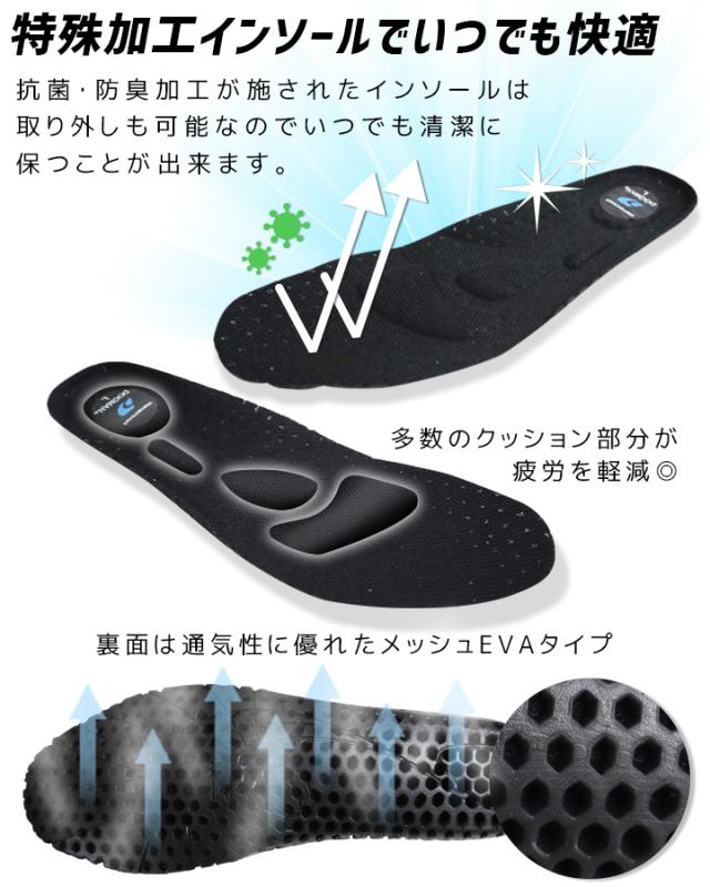 抗菌防臭加工が施された疲れにくいクッション仕様インソール