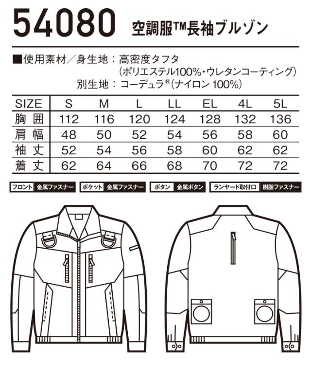 ジャウィン 空調服 長袖ブルゾン 54080 【服のみ】 遮熱加工 UVカット 撥水 ジャケット 熱中症対策 自重堂 作業着 作業服