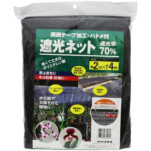 鍛造連 遮光ネット 黒 遮光率70% 周囲テープ加工・ハトメ付 サイズ幅2m×長さ4m