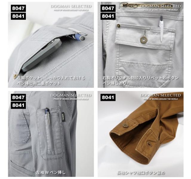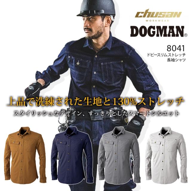 【即日発送】ドッグマン 長袖シャツ ドビースリムストレッチ 8041 メンズ 男性用 3シーズン 作業着 作業服 DOGMAN 中国産業