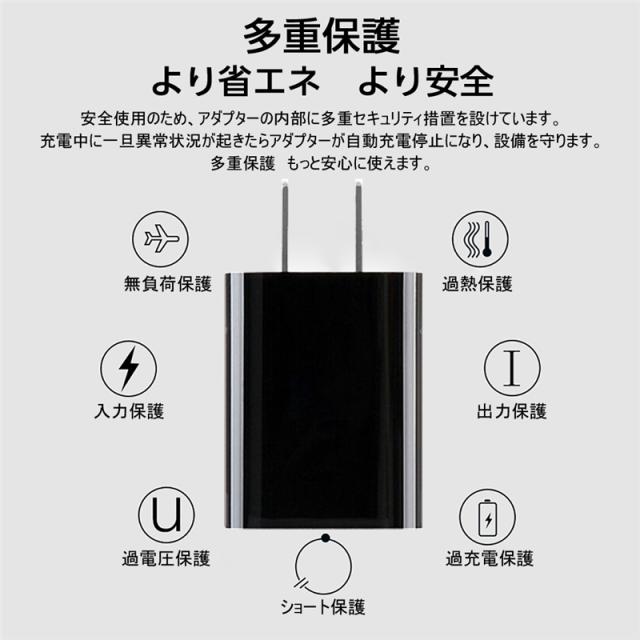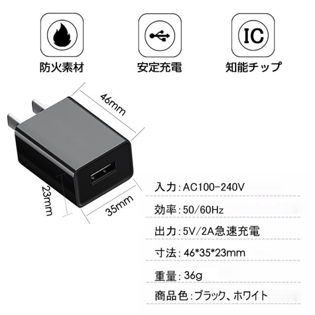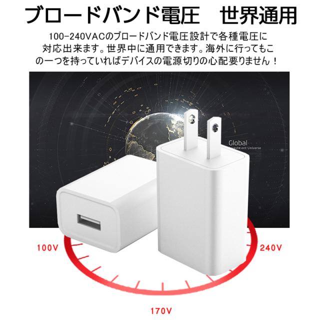 2.0A急速出力 時間節約 2.0Aの電流出力、充電スピードもっと速い!ブロードバンド電圧 世界通用100-240VACのブロードバンド電圧設計で各種電圧に対応出来ます。世界中に通用できます。海外に行ってもこの一つを持っていればデバイスの電源切りの心配要りません!温度保護スピード散熱