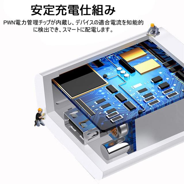 PWM電源コントロールチップ内蔵、電圧と電流の知能調整出来ます。バッテリー保護、安全充電出来ます。