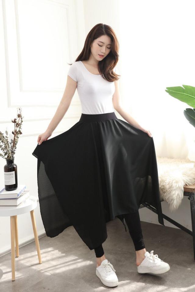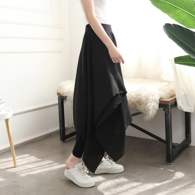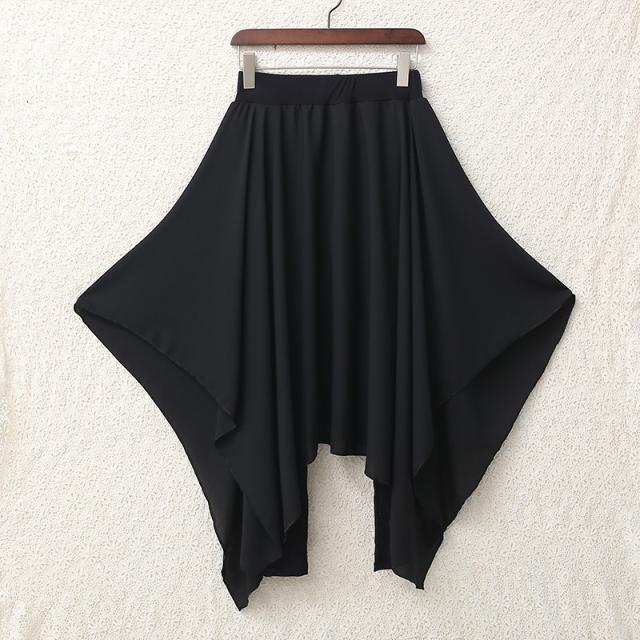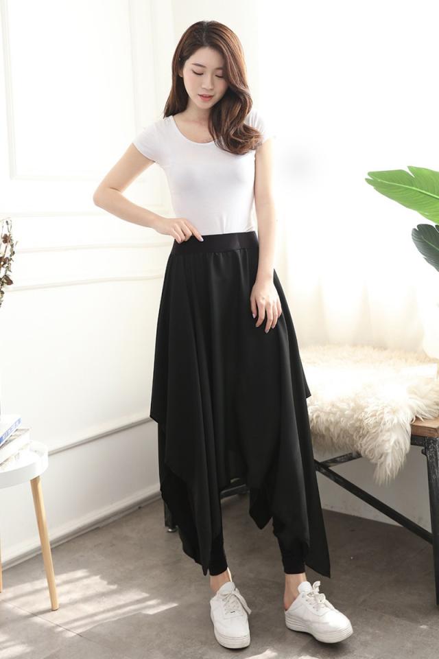 メ送料無料 レディース ファッション ワイドパンツ 超ゆるシルエット クロップドパンツ 不規則 ヘムライン ブラック 体型カバー
