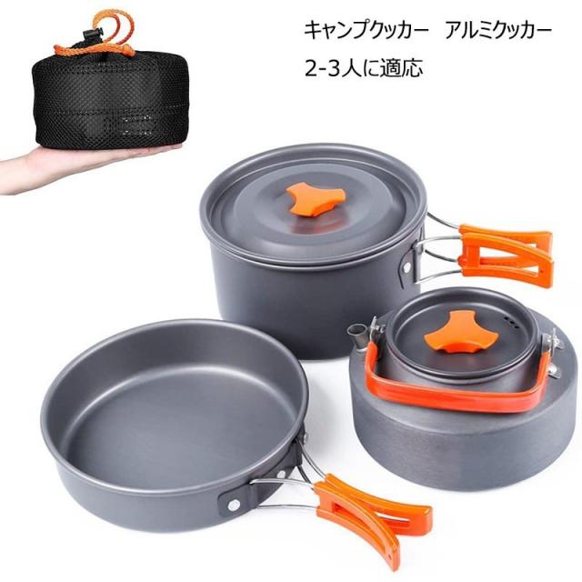キャンプ 道具 クッカーセット アルミクッカー アウトドア調理器具セット 登山用鍋 2-3人に適応 BBQ食器 ポータブル