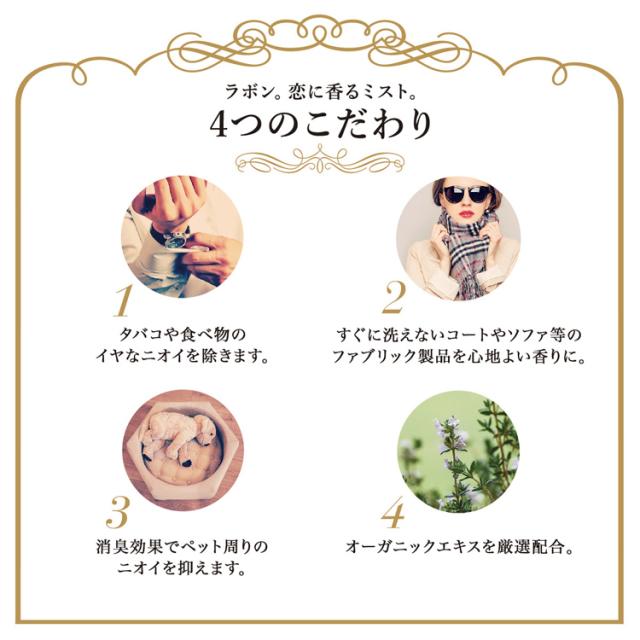 ●すぐに洗えないコートやソファ等のファブリック製品を心地よい香りに。