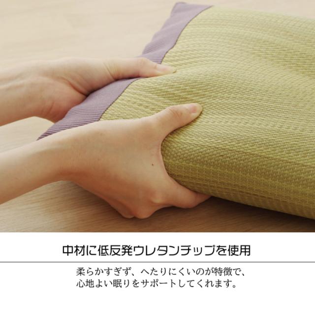 ■ 国産のい草を使用した、い草枕です。より頭にフィットするよう、枕の中心部分に「くぼ