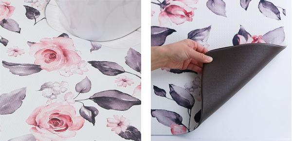 | いつも清潔 高い抗菌・防臭効果で、雑菌の繁殖や臭いを抑制します。高い防カビ効果もあるので、カビの発生と繁殖を抑制し、マットを清潔に保ちます。 | 安心の加工 防炎加工が施されているので、万が一マットに着火した場合も、燃え広がりにくいです。また、裏面もエンボス加工されたPVC素材なので、滑りにくく安心です。 |