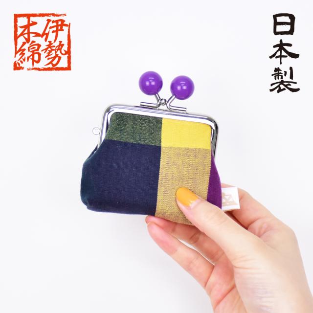 伊勢木綿 玉付き がま口 小銭入れ