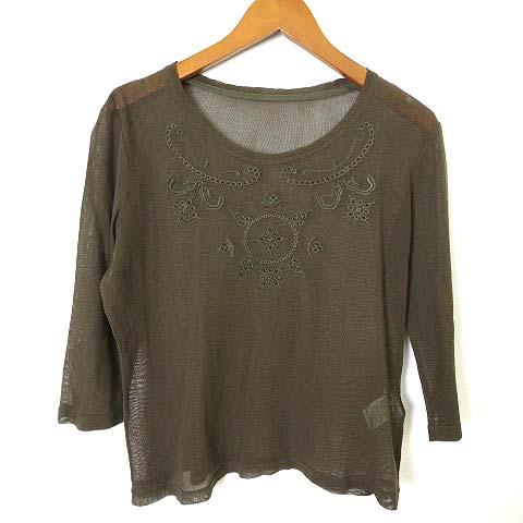 【中古】セシオセラ CECI OU CELA カットソー ハーフスリーブ 半袖 カットワーク 刺繍 透け感 シアー M 緑 カーキ