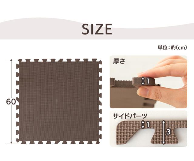 ジョイントマット 大判 4枚 4枚セット 防音 防水 カーペット ラグ 60×60 1cm キッズ 子供 子ども 部屋 ひとり暮らし PEJTM-601 床暖房対応 大判サイズ 防音対策 一年中 防水性 サイドパーツ付き サイドパーツ付き アイリスプラザ