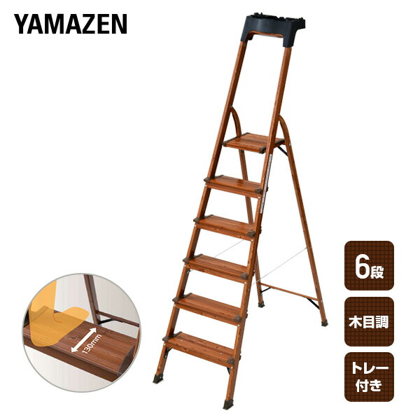| 山善 YAMAZEN 脚立 折りたたみ おしゃれ 6段 木目調 トレー付き PSHWT-6M |
