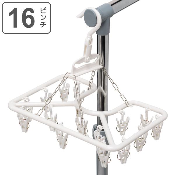 角ハンガー 16ピンチ ピンチハンガー ルームハンガー16P 室内干し ハンガー ( ドア干し マスク干し ちょい干し プラスチック 長押 小物干し ピンチ 洗濯ばさみ 洗濯物干し 16P 水平に干せる )