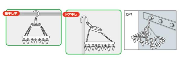 ●パイプハンガーの隙間干しや、ドア干しなどにも使えて便利です。