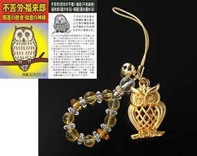 開運ふくろうの黄水晶ストラップ [ ストラップ 厄除け 厄除 巾着袋付き 携帯 かばん 開運 魔除け 厄払い ふくろう スマートフォン スマホ お守り 厄年 グッズ 幸運 贈り物 お守り プレゼント 男性 女性 メンズ レディース ]