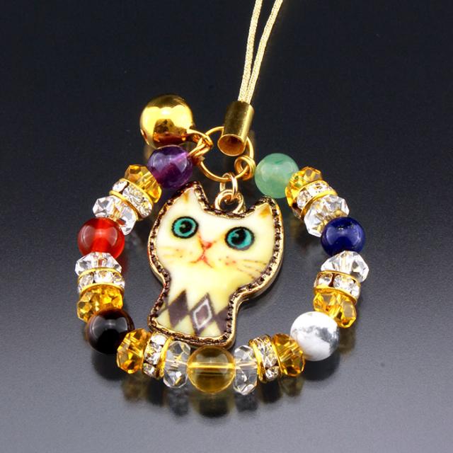 【きょとんした顔がかわいいネコのストラップ】天然石 パワーストーン ストラップ 開運 開運グッズ お守り 厄除け 水晶 ギフト プレゼント 母の日 敬老の日 プチギフト 開運ストラップ