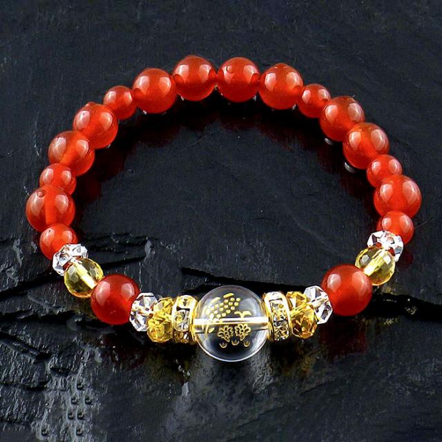 南天福寿・厄除けブレス [ ブレスレット レッド クリア 白水晶 黄水晶 赤メノウ ロンデル 健康 長寿 長寿祈願 金運 財運 天然石 男女兼用 レディース メンズ 開運 お守り 御守り 邪気払い 水晶 パワーストーン 日本製 ]