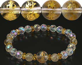 白水晶:12mm 珠×1個(南無妙法蓮華経刻印)、8mm 珠(64面カット)(オーロラ加工)×16個