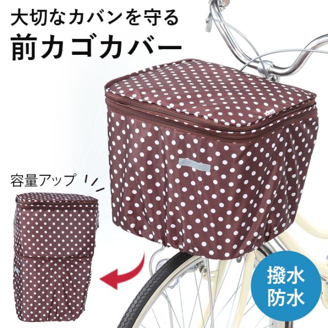 2段式 水玉前カゴカバー ブラウン カゴカバー 前カゴ用 前かご 容量アップ 二段式 撥水 雨の日 レイングッズ 通勤 通学 ひったくり防止 防犯 防犯グッズ 自転車 電動自転車 バスケットカバー ドット 水玉 可愛い