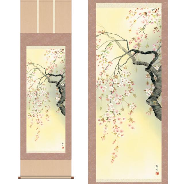 掛軸「桜花爛漫」山村観峰 筆 [ 収納箱 10年保証 43x111 満開爛漫 桜 桜花 季節掛 春 受注生産 床の間 和 リビング 和室 和風 掛け軸 日本製 名画 縁起物 プレゼント 画寸 送料無料 ]