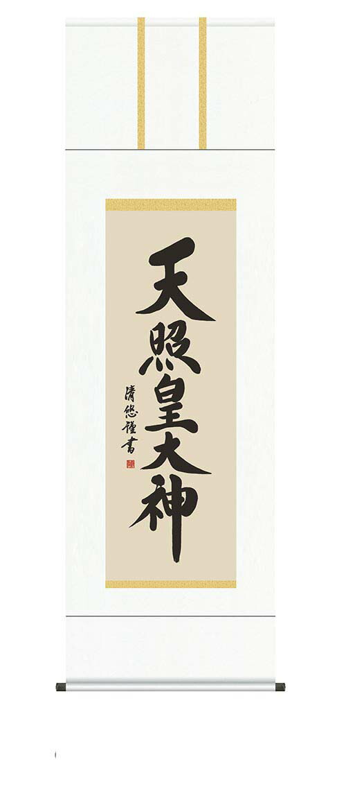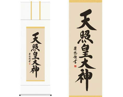 開運掛軸 【天照皇大神】 [ 収納箱 10年保証 品質保証付き 31×89 商売繁盛 御神号 縁起掛物 国産 国内産 受注生産 床の間 和風 掛け軸 日本製 名画 縁起物 プレゼント 画寸 送料無料 ]