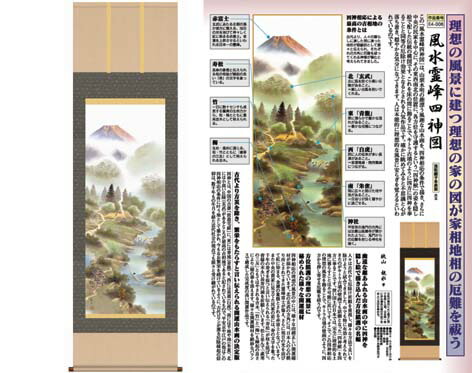 開運掛軸 【風水霊峰四神図】 狭山観水筆 [ 収納箱 収納箱 10年保証 品質保証付き 31×89 繁栄 四神獣 厄除け 厄払い 国産 国内産 受注生産 床の間 和風 掛け軸 日本製 名画 縁起物 プレゼント 画寸 送料無料 ]